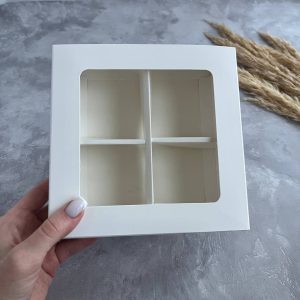 Завдяки прозорому верху коробки десерти в ній мають особливо виграшний вигляд.