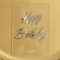 Топер Happy birthday прозорий прямокутник срібло, 10*7см