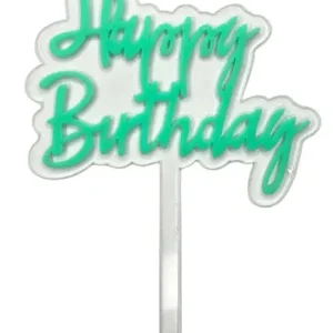 Топер Happy birthday на ніжці прозорий (смарагдовий напис)