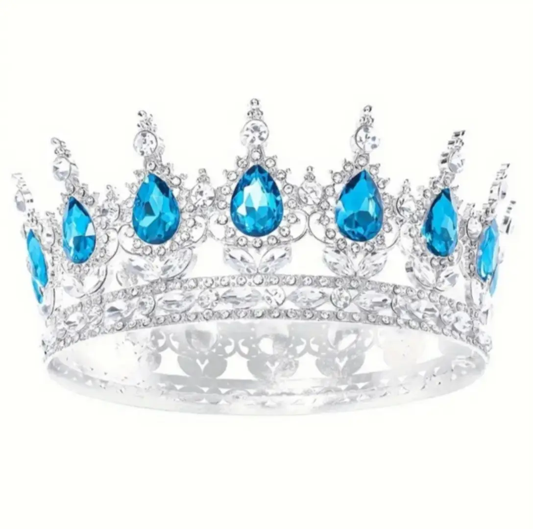 Корона для торта Д12см (срібна з блакитними камінцями)