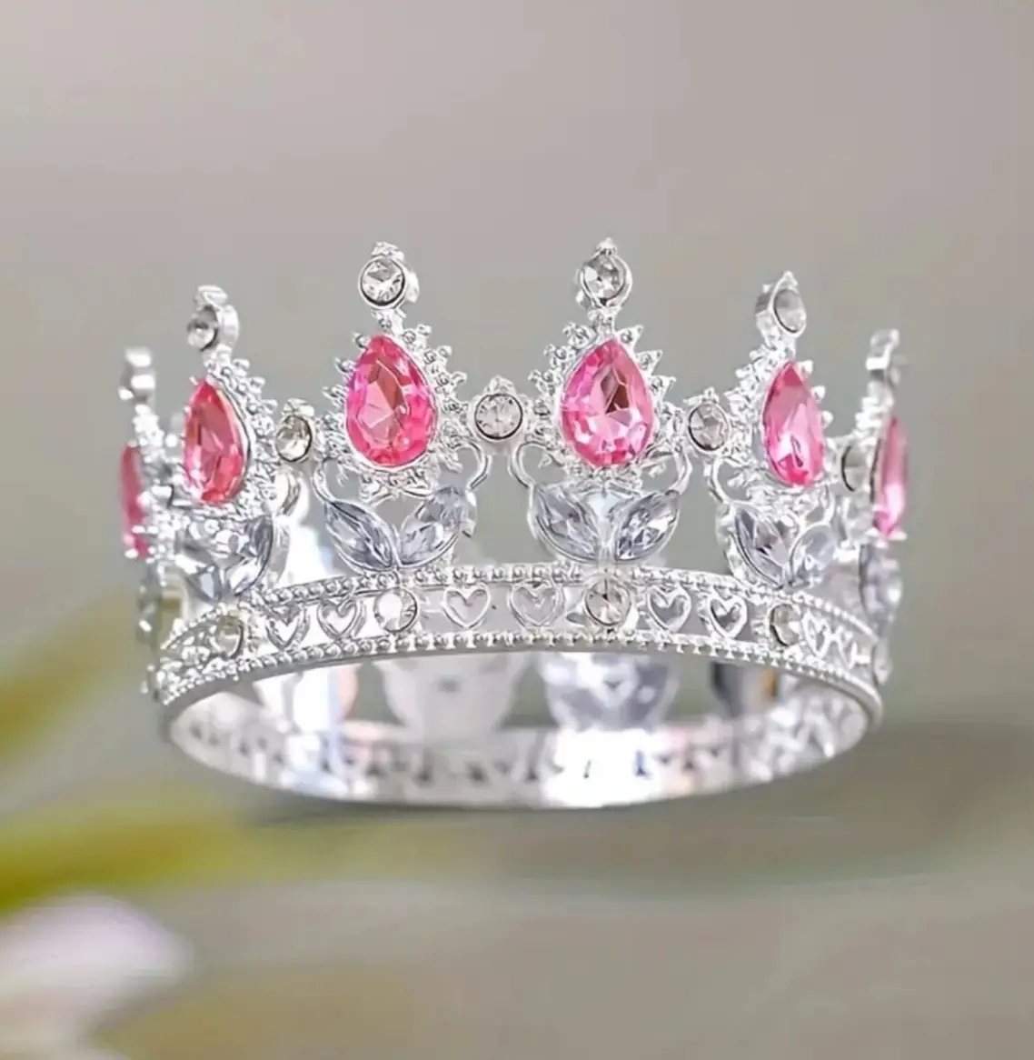 Корона Д8см (срібна з рожевими камінцями)