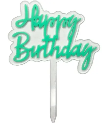 Топер Happy birthday на ніжці прозорий (смарагдовий напис)